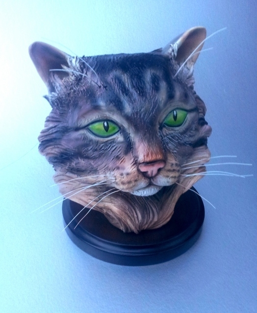 For this pet sculpture I worked from photos of the cat then sculpted in clay and airbrushed the markings